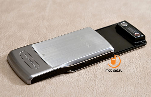 Мелкие царапинки хорошо видны на лакированной поверхности крышки аккумуляторного отсека, со временем на ней образуются заметные потертости. Это особенность многих слайдеров Samsung, которая берет начало еще со времен Samsung SGH-D500.