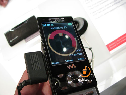 Вторая интересная новинка – Sony Ericsson W995 Walkman, новый музыкальный флагман компании, ранее известный как Hikaru. Телефон выполнен в форм-факторе слайдер, его дизайн типичен для SE, всё аккуратно и со вкусом. В верхней части корпуса есть специальная подставка, предназначенная вроде как для удобства прослушивания музыки. В действительности, решение довольно сомнительное, подставка никак не фиксируется в раскрытом состоянии, и телефон норовит упасть при первом же касании. Порадовало наличие 3.5-миллиметрового разъёма на корпусе – дождались, что называется. Ну и камера с разрешением 8.1 мегапикселя совсем нетипична для музыкального решения. Объём встроенной памяти невелик, около 120 Мб, но в комплекте с телефоном будут поставляться карты памяти на 8 ГБ.
