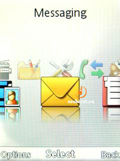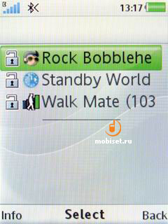 В режиме ожидания на экране отображается привычная верхняя строка с пятиуровневыми индикаторами приёма сигнала и заряда батареи. Между ними могут находиться различные иконки уведомлений об активности беспроводных интерфейсов либо наличии пропущенных событий. Замыкает список возможная иконка запущенного Java-приложения.