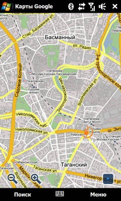 Сразу под динамиком, а точнее в шести миллиметрах от сетки, начинается активная сенсорная область, а заодно и пространство 3.2-дюймового TFT-экрана с разрешением 480 x 800 точек, или попросту WVGA. Используемая в Touch Diamond 2 матрица столь же хороша по цветопередаче и проработке чёрного/белого цвета, как и подробно описанный нами дисплей первого Diamond, так что расписывать насыщенную цветовую гамму, пусть и ограниченную системой в рамки 65536 цветов, нет смысла. Впрочем, производитель экранов не менялся, в отличие от изготовителя сенсорного стекла, которое реагирует на стилус так же хорошо, как и на касания пальцев.