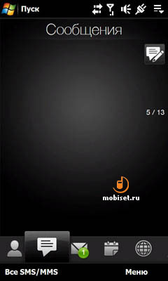 Если в сообщениях SMS активно используется режим отображения переписок в стиле Instant Messages, то раздел входящих в оболочке Touch FLO 3D позволяет просматривать сразу тексты с указанием времени получения и номером телефона отправителя. Многие ещё не успели в полной мере раскритиковать столь лёгкую и открытую демонстрацию всей информации об отправителе в Apple iPhone, как эту же спорную возможность ввели в HTC. Нам куда интереснее взглянуть на плавное построчное вылетание текста во время прокрутки, замечательно тем, что переход от одного до другого сообщения занимает не более секунды. В случае с длинными трактатами продолжительностью в несколько сотен символов, время перехода может достигать двух секунд, но и это выглядит вполне оправданным, учитывая плавность анимации.