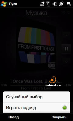 Теперь плавно перейдём к возможностям проигрывателя, доступного в надстройке над режимом ожидания. Как мы уже упоминали в описании Touch Flo 3D, переключение между композициями производится вертикальными движениями пальцем по экрану, либо горизонтальными отклонениями навигационной клавиши. Обложки альбомов берутся не из папок с композициями, а напрямую из метаданных MP3-файла. Доступна прогрессивная прокрутка в композиции, а вот регулировка громкости доступна лишь системная, ограниченная шестью градациями.