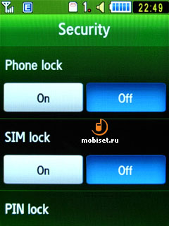 Кроме того, в настройках традиционно присутствует множество пунктов настройки безопасности, за счёт которых можно не только настроить работу телефона в сетях операторов, но и попросту установить пароль на запуск приложений и игр.