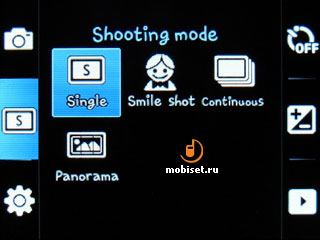 По бокам видоискателя можно без труда заметить виртуальные клавиши смены режимов камеры, переход к просмотру отснятых кадров либо переход к настройкам.