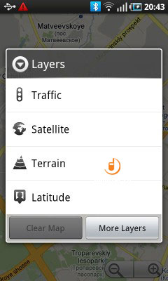 Вверху экрана находится сервисная строка, где отображается время, заряд аккумулятора, индикатор уровня приёма сигнала. Там же отображаются активные подключения и иные данные. Нажав на нее, можно более подробно узнать о том, какие программы были загружены, что за сообщения и письма получены или какие файлы приняты по Bluetooth.