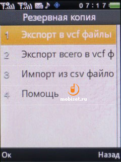 Сортировки по имени или фамилии нет, поэтому поиск ведется только по первым буквам контакта. Присутствует функция создания резервной копии и последующего восстановления данных.