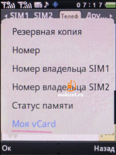 В памяти хранится до 500 телефонных номеров. Кроме того, доступна и память SIM-карты. Телефонная книга состоит из нескольких вкладок: все номера, любимые, SIM 1, SIM 2, память телефона, отображаются группы пользователей.