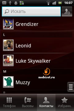 Есть быстрое меню: нужно нажать на место для иконки с фото контакта, после чего можно позвонить, отправить сообщение по SMS или по электронной почте, посмотреть данные в Facebook.