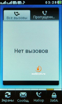 Сортировки по типам звонков нет, они отличаются лишь значками. Если выбрать отдельный контакт из списка, то отобразится дата и время звонка, его продолжительность и количество совершенных вызовов данному абоненту. Отображается имя пользователя, если данный номер был ранее сохранен в телефонной книге. Для вызова абонента достаточно выбрать его номер из списка и выбрать SIM-карту для звонка, после чего устанавливается соединение. Во время входящего звонка на экран выводится номер звонящего и его имя.