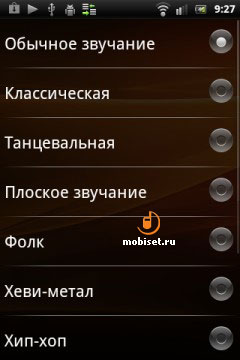 Доступны настройки эквалайзера. Это следующие пресеты: обычное звучание, классическое, танцевальная, плоское звучание, фолк, хеви-метал, хип-хоп, джаз, поп, рок. Ручных настроек нет. Предусмотрен режим перемешивания. При желании отключается световая индикация, которая работает при подключенных наушниках.