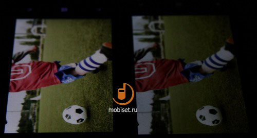По общим впечатлениям для своего класса экран очень хороший, на зернистость жаловаться не приходится, плотность точек на уровне 246PPI. В то же время в отличие от более дорогих моделей здесь нет стекла Gorilla Glass. Из ближайших примеров с такими же цифрами - HTC Radar, Philips W632 и LG Optimus Sol E730. На примерах Nokia Lumia 620 (справа) показана на фоне своего главного конкурента – HTC Windows Phone 8S (слева). Они очень похожи по цветопередаче, но все-таки отличия есть. У Nokia немного больше запас по яркости, оттенки передаются лучше, натуральнее.