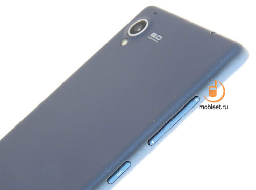 Вокруг экрана проходит невысокий бортик, он сыграет свою защитную функцию, если класть смартфон экраном вниз на стол. Корпус получил неразборную конструкцию, лицевая поверхность закрывается стеклом, а боковины и задняя часть покрыты прорезиненным пластиком. Он темно-синего цвета, смартфон в таком исполнении смотрится красиво.
