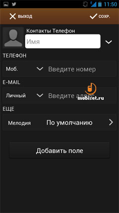 Контакты берутся как из памяти SIM-карты, так и через социальные сети, если подключены соответствующие аккаунты. Каждая запись получает несколько полей, где можно указать все необходимые контактные данные. Выбрав контакт в общем списке, вы откроете перечень сведений, присвоенных ему.